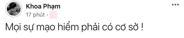 Nam rapper đã 'phát khùng' khi chia sẻ lại bài báo với tiêu đề: “Giữa ồn ào bạn gái cũ đăng đàn tiết lộ bị ai đó làm tổn thương, Karik chỉ đăng vỏn vẹn 8 chữ mà căng cực”. Khoa Phạm khẳng định 8 chữ anh nói liên quan đến thí sinh chứ không phải đang nói về bạn gái cũ. Bài báo đã xuyên tạc ý của anh khiến dân mạng hiểu theo hướng khác gây ồn ào.