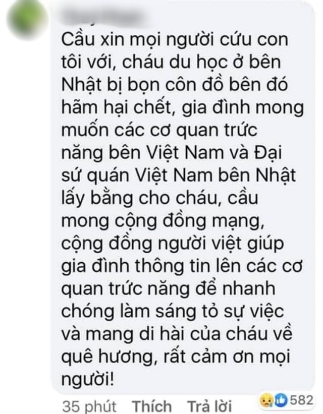 Vụ việc khiến cộng đồng mạng đau lòng một thì mẹ của nạn nhân đau đớn gấp hàng trăm nghìn lần. Theo một số nguồn tin, nam thanh niên có tên T.T.Đ.A, sinh năm 1999, quê Hải Phòng. Bạn bè Đ.A cho biết chàng trai này là con một trong gia đình chỉ còn mình mẹ ở nhà chờ con trai đi làm tại Nhật. Đ.A được nhiều người nhận xét ngoan ngoãn, hiếu thảo, rất biết quan tâm đến mọi người xung quanh.