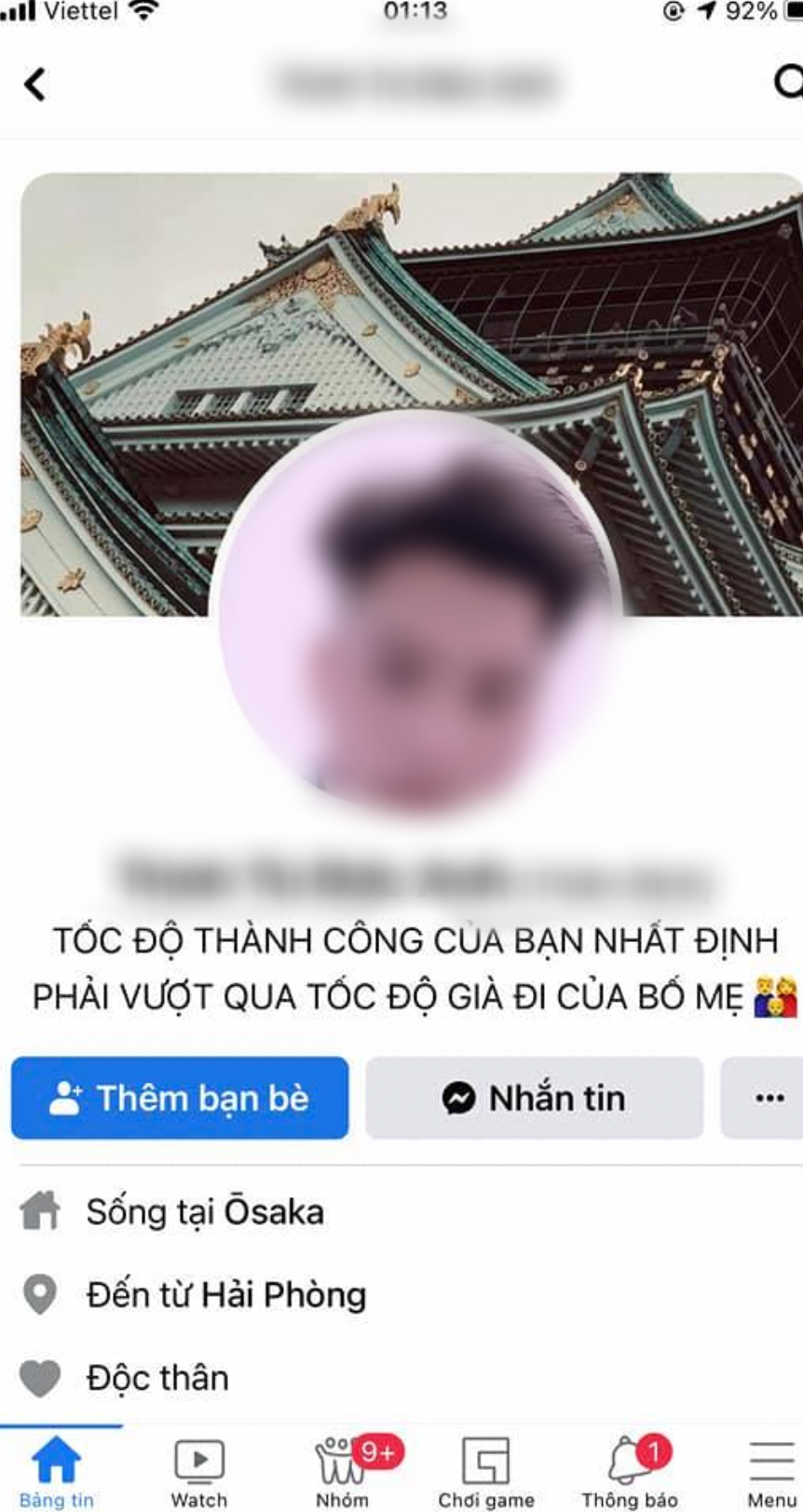 Trang cá nhân của nam thanh niên người Việt nghi bị đạp chết tại Nhật Bản tối qua.