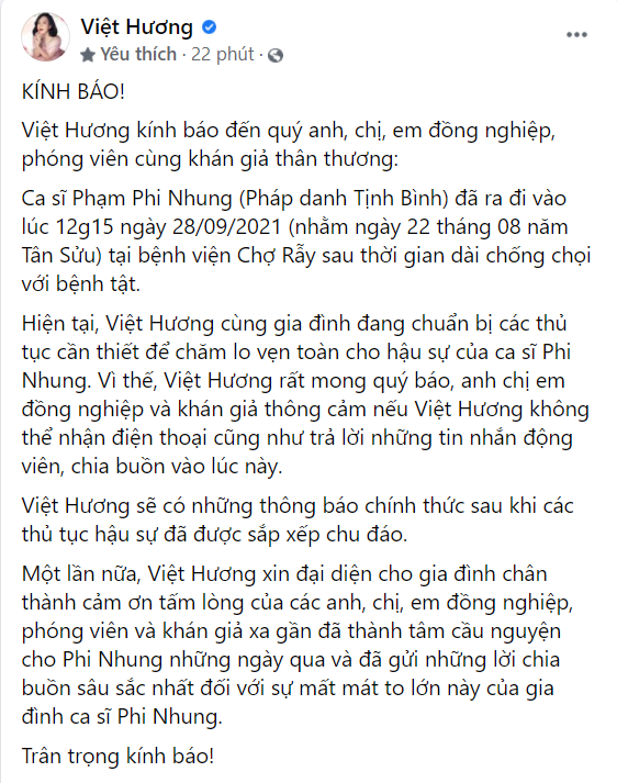 Nhiều sao Việt gửi lời chia buồn khi hay tin Phi Nhung qua đời vì Covid-19 (Ảnh: FBNV)