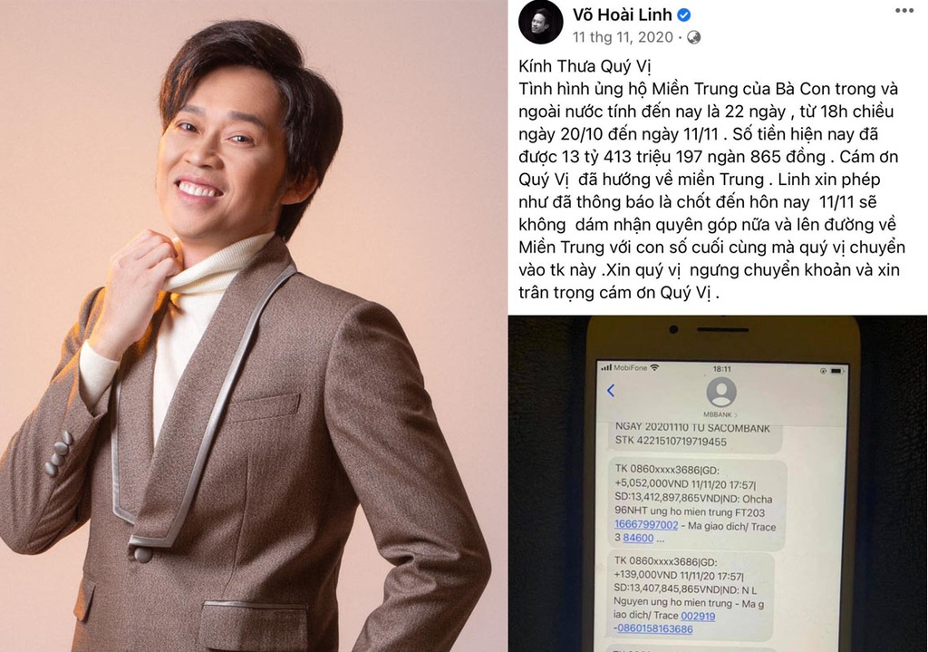 Những ngày vừa qua, thông tin liên quan đến nghệ sĩ Hoài Linh được cư dân mạng quan tâm khi anh liên tục bị réo gọi trong các livestream. Sau đó, nhiều người tiếp tục hoài nghi về số tiền quyên góp ủng hộ miền Trung từng được diễn viên Dạ cổ hoài lang kêu gọi trước đó.