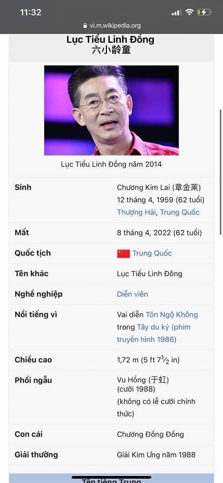 Sáng ngày 8/4, cộng đồng mạng tại Việt Nam bàng hoàng trước loạt bài viết đưa tin Lục Tiểu Linh Đồng qua đời, hưởng dương 83 tuổi. Ông chính là người thủ vai Tôn Ngộ Không trong bộ phim truyền hình đình đám Tây Du Ký phiên bản năm 1986.