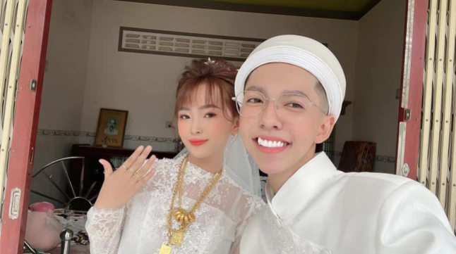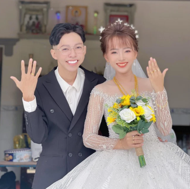 Trong bức ảnh, nam TikToker mặc áo vest bảnh bao, bên cạnh là một cô gái đang mặc váy cưới. Hai "vợ chồng" giơ tay để khoe nhẫn đôi. Màn thông báo của Võ Thành Ý khiến nhiều người hâm mộ sửng sốt.