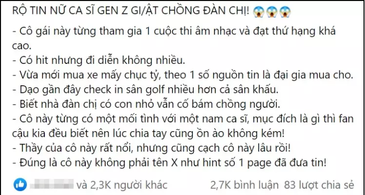 Chiều tối ngày 19/3, mạng xã hội bỗng dưng lan truyền tin tức Hiền Hồ là người giật chồng, kẻ thứ 3 chen chân vào gia đình 1 đàn chị trong showbiz. Sau đó, hàng loạt cái tên đã bị netizen "liệt kê" dù chưa có bất kì chứng cứ xác thực nào.